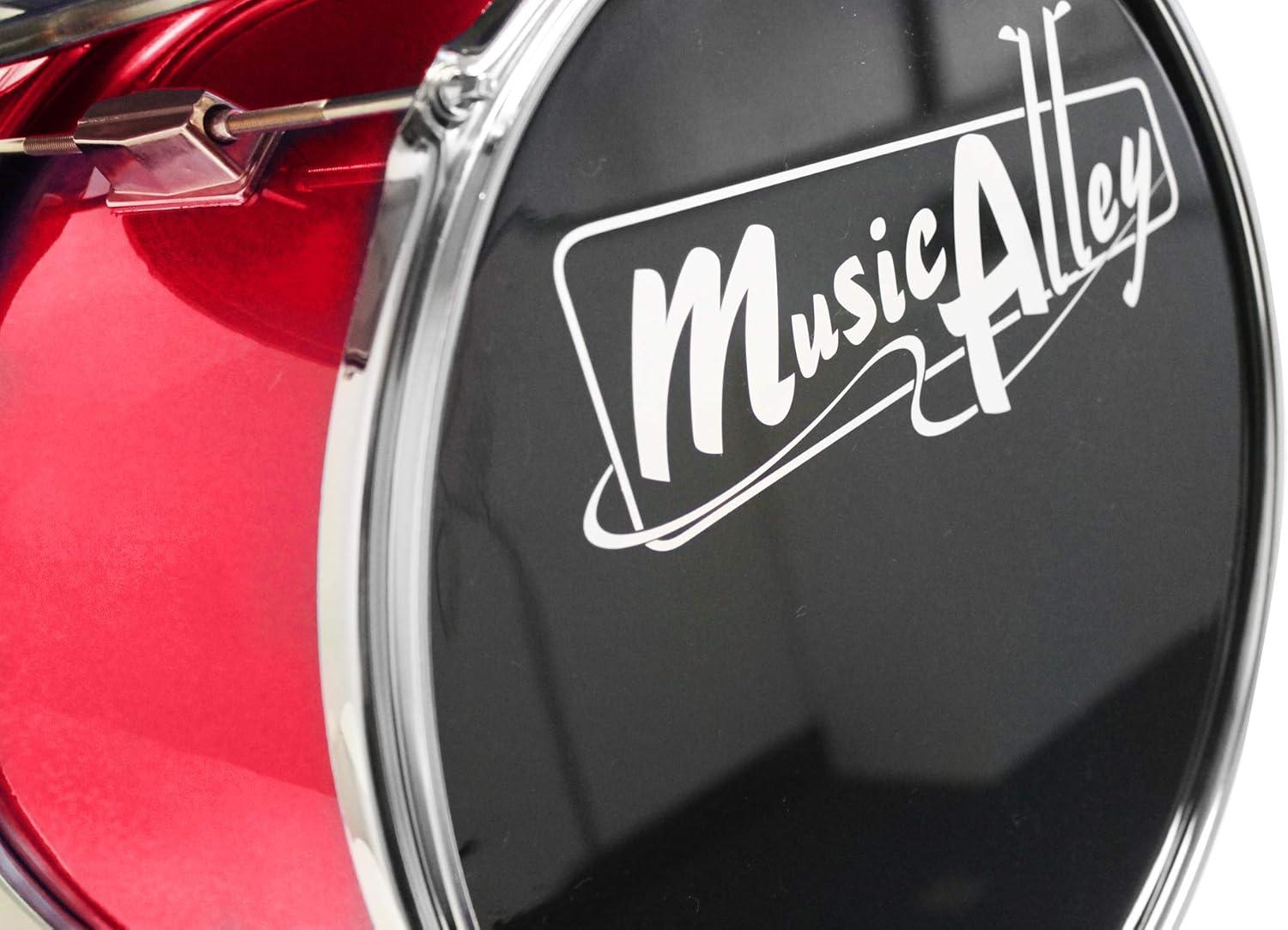 Music Alley 3 Piece Kids Drum Set with Drum Sticks & Drum Throne Seat(Metallic Red)