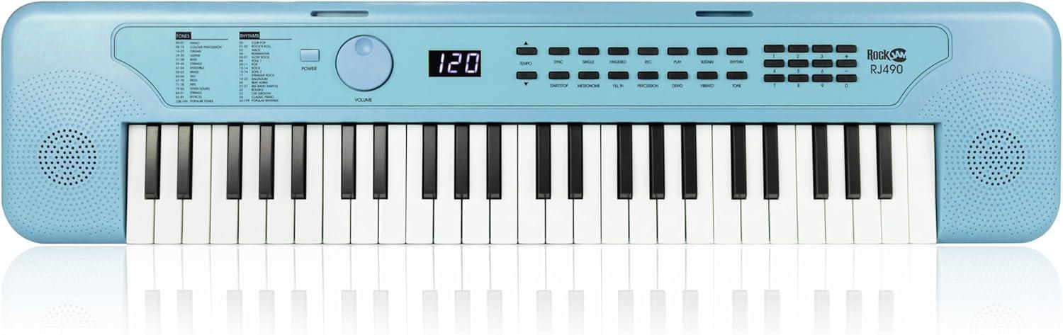 Introduce your child to the world of music with the RockJam 49 Key Keyboard Piano. This versatile keyboard piano is perfect for beginners and young musicians, offering an immersive and educational experience. The RockJam keyboard is equipped with 49 keys, making it an ideal piano keyboard for kids and adults alike. The RockJam 49 Key Keyboard Piano comes with a power supply, ensuring uninterrupted playtime, and includes a sheet music stand to keep your child's favorite tunes at their fingertips. The package also features piano note stickers, making it easier for young learners to familiarize themselves with the keys and notes. Additionally, the keyboard comes with lessons from Simply Piano, a highly regarded learning app that guides beginners through their musical journey step-by-step. This keyboard piano for kids offers a wide range of features, including multiple tones, rhythms, and demo songs, making it a comprehensive music keyboard. Its compact design makes it a small keyboard that's easy to fit into any room, and its lightweight build and battery powered option means it can be moved around effortlessly. Perfect for aspiring musicians, this kids piano keyboard encourages creativity and develops musical skills. The RockJam 49 Key Keyboard Piano is not just a toy but a fully functional digital piano that provides a real musical experience. It's an excellent choice for parents looking to introduce their children to the joys of music with a high-quality electric keyboard.