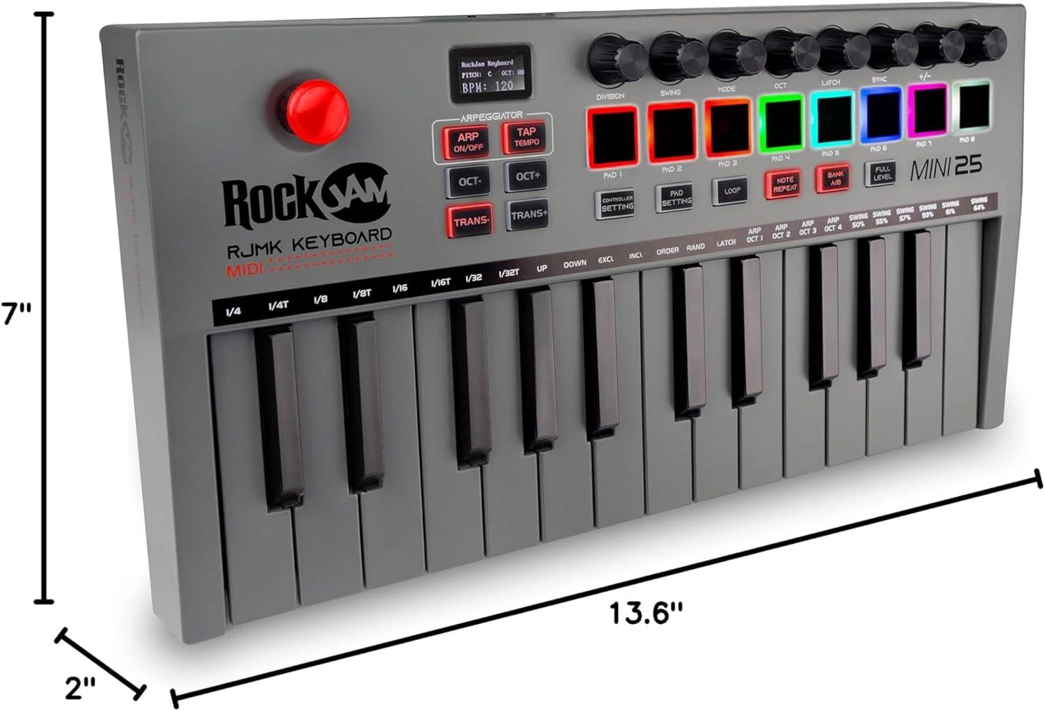 RockJam 61-Key Compact Keyboard Piano with LED Display, Keynote Stickers & Lessons(25 Key Midi)